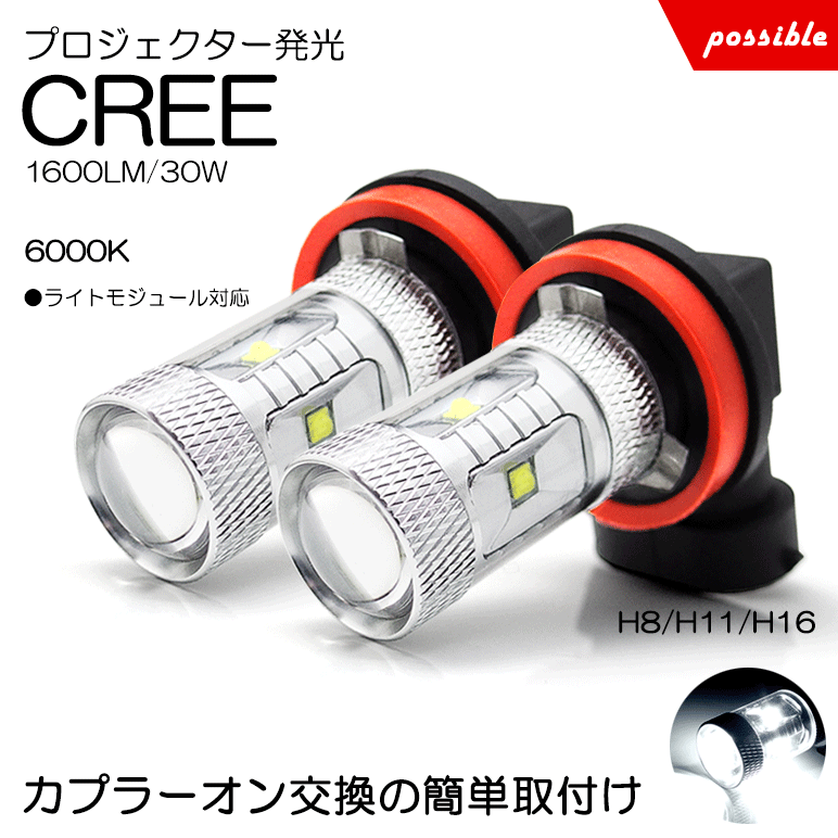 CW系/CW1/CW2 前期/後期 アコードツアラー LED フォグランプ H11 30W CREE/クリー プロジェクター発光 ホワイト/6500K 2個入り 車検対応