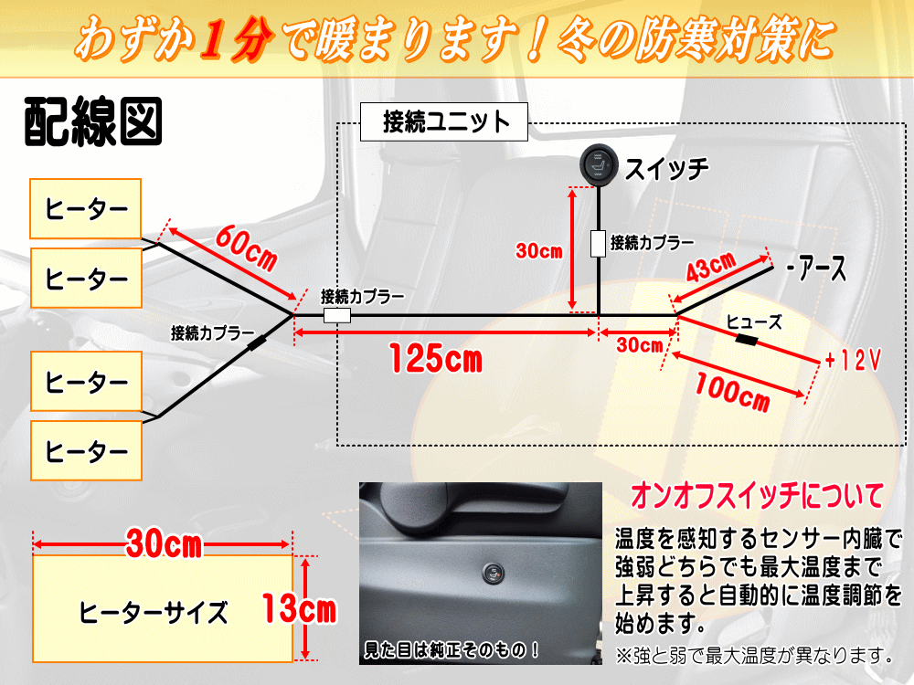 ぽかぽか!すぐ暖かい! 後付け シートヒーター シートカバー専用 サーモスタット機能付き 自動車用 ヒーター ホットカーシート 汎用ヒーター 車 ヒーター 軽自動車 後部座席にも