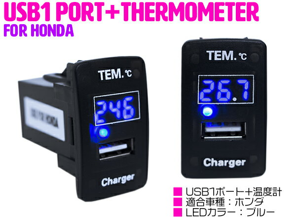 USB充電ポート & 3桁表示の温度計デジタルメーター スイッチホールカバー純正の空いているスイッチホールに取り付け、携帯やダブレット端末を車内で充電できます。LEDが点灯することで、電装品の動作状態がひと目でわかり、また、夜間でもボタンが見つけやすいです。 ★★★配線について★★★・赤…常時電源(+)・黒…アース(-)★★★★★★★★★★★★ ■製品仕様 対応形状:ホンダA LED点灯カラー:ブ...