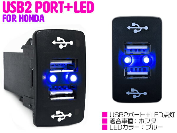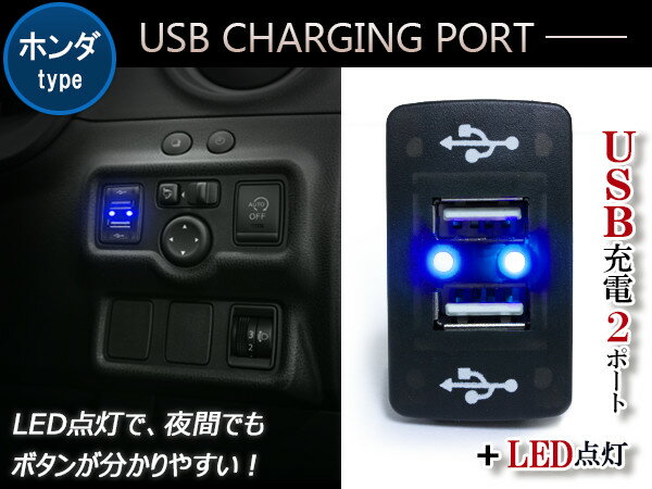2.1AのLED付、2口USBポートです。純正の空いているスイッチホールに取り付け、携帯やダブレット端末を車内で充電できます。LEDが点灯することで、電装品の動作状態がひと目でわかり、また、夜間でもボタンが見つけやすいです。 ★★★配線について★★★・赤…常時電源(+)・黒…アース(-)★★★★★★★★★★★★ ■製品仕様 対応形状:ホンダA LED点灯カラー:ブルー 【他カラーはこちら】 【ホン...